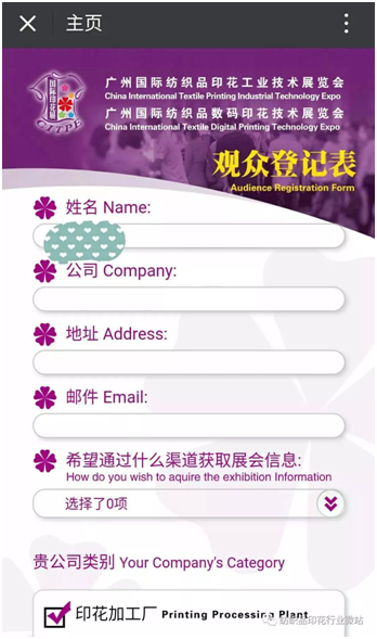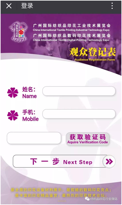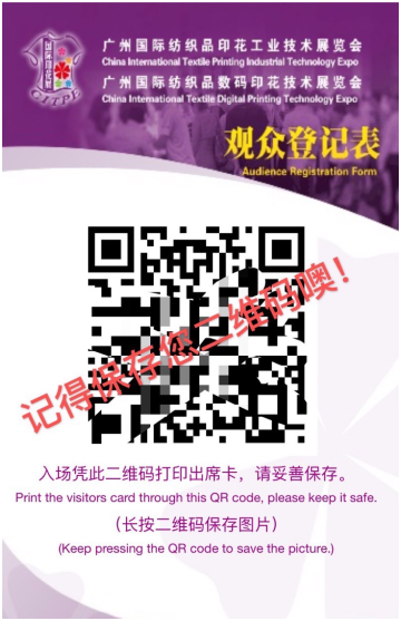 觀眾可關注展會微信公眾號“紡織品印花行業(yè)微站”進行觀眾預登記入場參觀