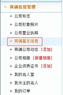 在商鋪后臺(tái)左側(cè)--“商鋪信息管理”下--“商鋪基本信息”--該欄目下 增加了一個(gè)欄目