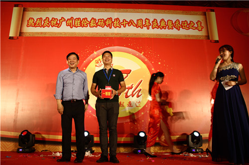 上午10點(diǎn)整,于廣州天河區(qū)天源路自編48號大院103棟一樓進(jìn)行隆重剪彩儀式,在剪彩儀式前,勝倫總經(jīng)理邢福建先生首先致歡迎詞,隨后副總經(jīng)理胡偉彬先生發(fā)表了講話,北京亞聯(lián)恒業(yè)數(shù)碼科技有限公司總經(jīng)理王寶剛先生致祝賀詞。王寶剛先生回顧了廣州勝倫從2000年到現(xiàn)在,共15年的時間,作為武藤大幅面打印華南區(qū)域的總代理為客戶推薦了先進(jìn)的武藤大幅面打印設(shè)備,憑借著大幅面打印設(shè)備的技術(shù),性能,以及性價比的優(yōu)勢,結(jié)合勝倫在華南市場15年的市場活動,廣州勝倫已經(jīng)成為可以為客戶全方位提供解決方案的供應(yīng)商。特別提及廣州勝倫從2012年起,在數(shù)碼印花方面做了大量的市場開拓工作,為很多服裝數(shù)碼印花及皮革數(shù)碼印花客戶推薦了武藤相關(guān)數(shù)碼產(chǎn)品,為武藤大幅面打印機(jī)在華南特別是廣東的市場開拓做了極大的貢獻(xiàn)。緊接著進(jìn)行隆重的剪彩儀式,祥獅獻(xiàn)瑞把整場剪彩活動推向高潮,帶來歡樂的氣氛。隨后周年慶典活動于香格里拉酒店隆重舉行,全國各地經(jīng)銷商、同行朋友及各地行業(yè)媒體等賓客參加了活動。在慶典活動現(xiàn)場,一眾領(lǐng)導(dǎo)通過觸摸啟動球正式啟動勝倫成立十八周年暨喬遷之喜活動,現(xiàn)場頒發(fā)了MUTOH最佳合作伙伴獎并進(jìn)行了幸運(yùn)大抽獎,獎品豐富誘人,特設(shè)置特等獎一名,由勝倫提供MUTUHVJ-1638W機(jī)器免費(fèi)使用一年,一等獎兩名,獎勵900c噴頭各一個等。 隨后的午宴上精彩的各種表演以及美食供應(yīng),表演者與現(xiàn)場來賓的互動,整場午宴的氣氛激情高昂。