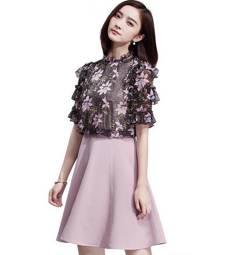 名媛風(fēng)情公主隆重,先拋開大花朵朵的潛在雍容,單看木耳小立領(lǐng)與荷葉衣袖層疊,就能將矜貴清甜雅致清婉裝個(gè)盆滿缽滿,更何況還有中裙傘擺拼接的名媛經(jīng)典知性清秀,使得浪漫尤其有底氣。
