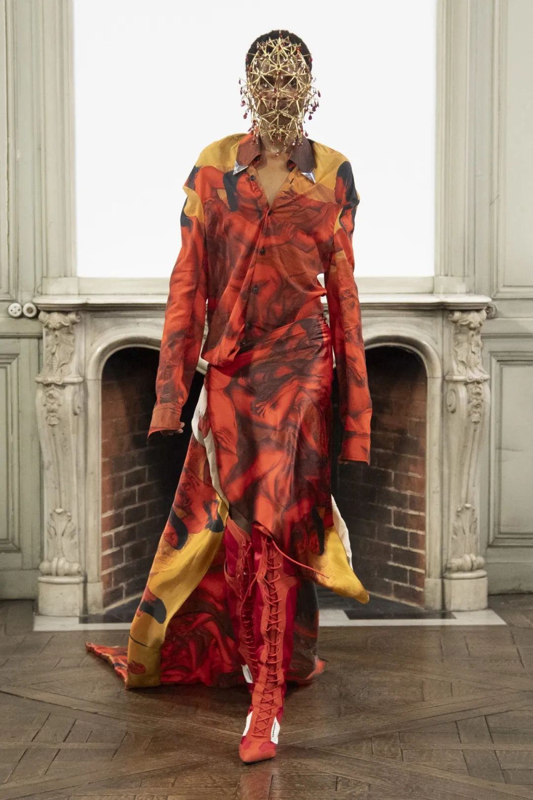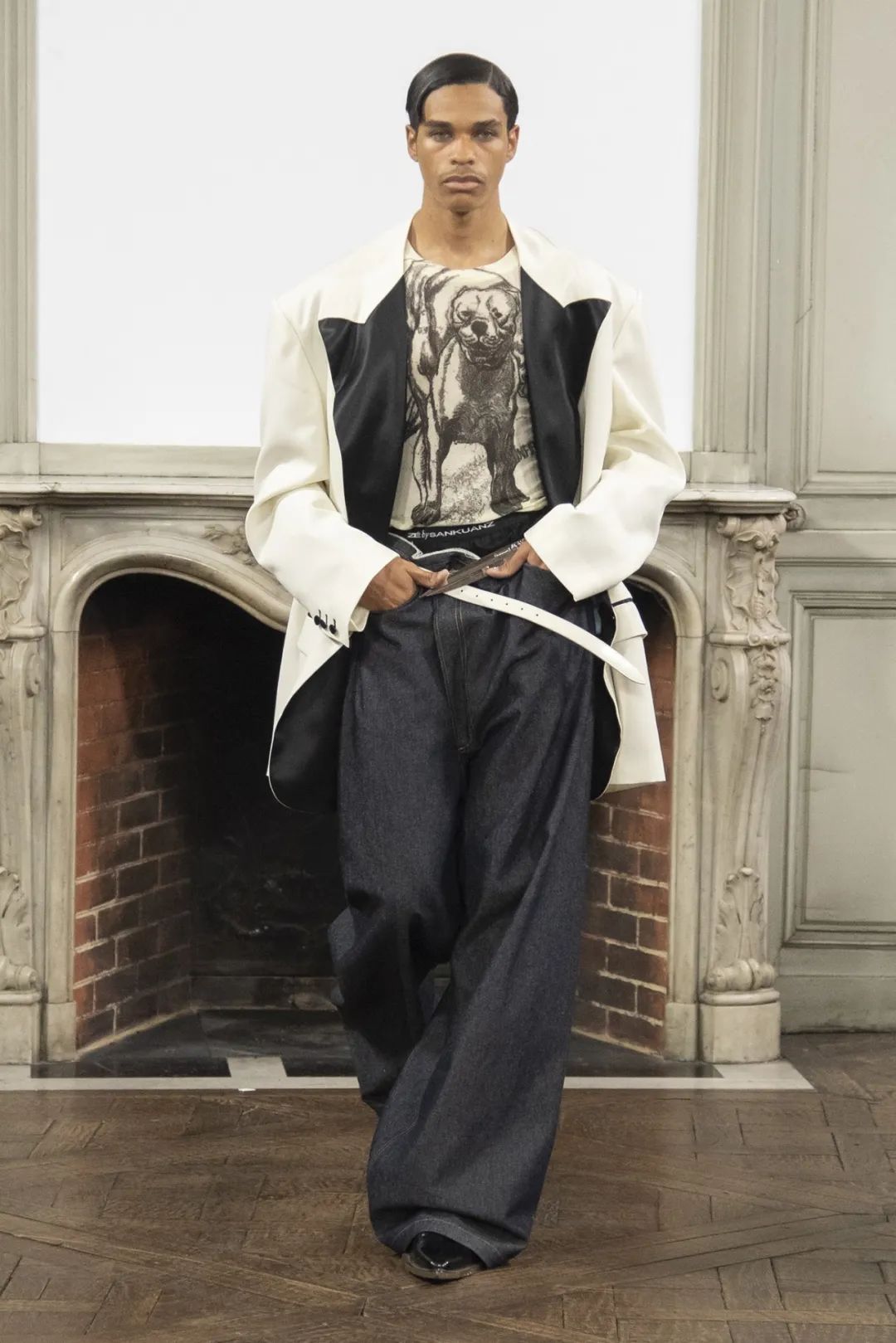 創(chuàng)造與毀滅的象征,秩序與混沌的代表、死亡與新生的隱喻,神話中形象多元的女巨人成為 SANKUANZ 2024 年春夏系列的創(chuàng)想主題。SANKUANZ 以模糊性別概念的設(shè)計(jì)語言來詮釋女巨人的多重性與復(fù)雜性,也讓街頭風(fēng)格和高級(jí)時(shí)裝衍生出更多元的深度融合方式。