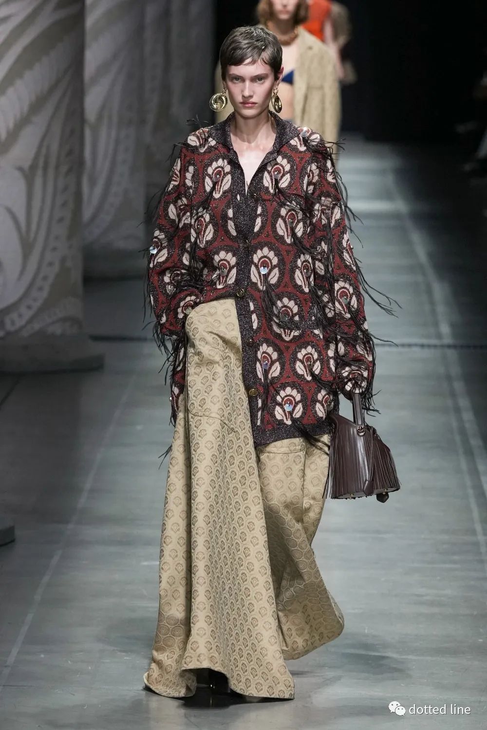 想象力與創(chuàng)造力交織,致敬品牌經(jīng)典底蘊(yùn)。ETRO2024春夏女裝系列秀場上,ETRO經(jīng)典佩斯里印花與牛仔、錦緞等多元面料碰撞,在絢爛色彩中煥然新生。