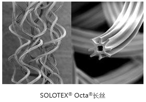 英威達公司推出的Thermolite®中空滌綸、Viloft®扁平鋸齒粘膠以及帝人公司的異形卷曲纖維SOLOTEX® OCTA®等異形纖維,制成的功能面料具有優(yōu)異的保暖功能。