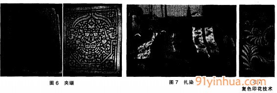 現(xiàn)代社會(huì)的多樣性和創(chuàng)新性要求不斷推陳出新,除了傳統(tǒng)白底藍(lán)花、藍(lán)底白花外又增加深淺復(fù)色印花技術(shù)(圖8),為藍(lán)花布增添新品種。除此以外還現(xiàn)了紅底白花或白底紅花以及地白花或白底綠花的印花布.根本上打破了傳統(tǒng)印花布色調(diào)一的局限。