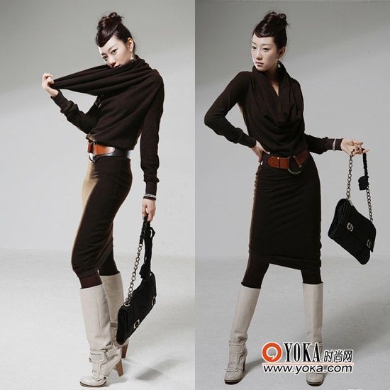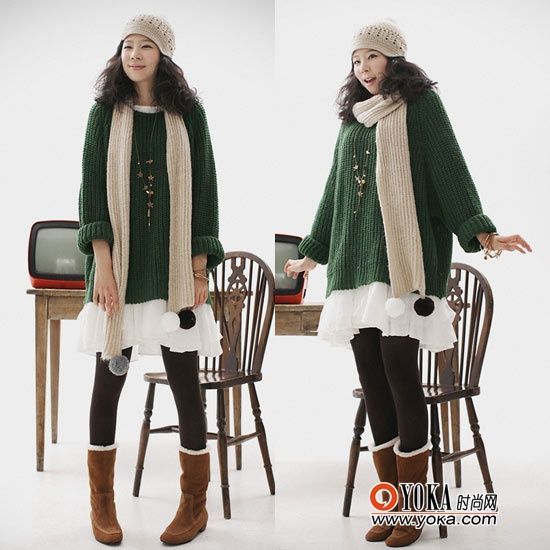 搭配指南:針織連衣裙一直都備受MM們的青睞,加上一條圍巾當然更增色不少。