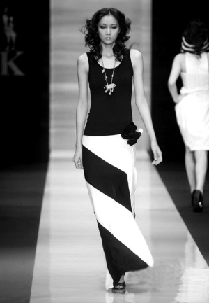 盡管,春夏服飾總是絢麗的色彩為主,但是黑與白這兩個經(jīng)典的色系無論哪個季節(jié)都不會從時尚界徹底消失。盡管在春光明媚的春夏,黑色和白色依然受寵愛,與往年不同的是,今年的黑色與白色不再分開出現(xiàn),而是攜手登場。在時裝秀上,你會感覺到設(shè)計師今年喜歡玩黑白對對碰的游戲,Moschino的黑白格紋褲裝,對比強烈的黑白上衣,蝴蝶結(jié)和菱格紋展現(xiàn)的中性魅力。在設(shè)計師陳非兒時裝發(fā)布會上,也能感覺到這種利用黑白兩色碰撞的表現(xiàn)手法,黑白相間的豎條紋抹胸裙、黑白相間的橫條紋背心……通過對比的手法,展現(xiàn)女性堅強的一面。