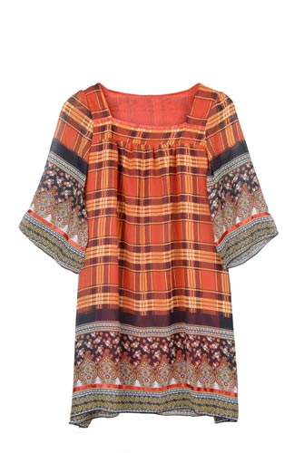 民族風格紋連身裙(紅)