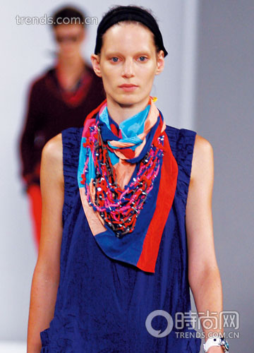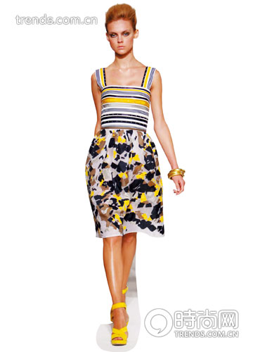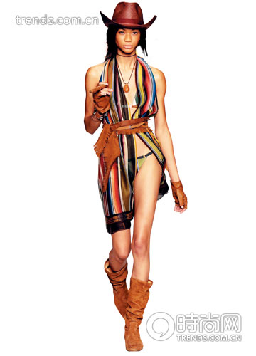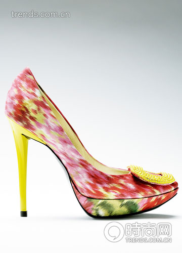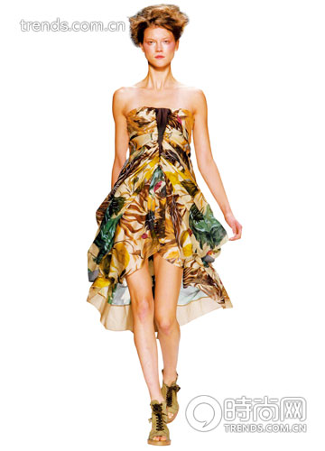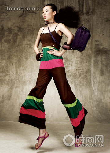 本季的印花風(fēng)格裙裝主要可以歸納成,非洲植物、動(dòng)物、非洲裝飾性彩繪人物,以及水墨漸變效果印花幾大類(lèi)。由于印花圖案本身的色彩豐富和極具裝飾味道,所以在配件的搭配使用上應(yīng)該盡量簡(jiǎn)練,除了外出必備的手袋,和烘托整體效果的寬大手鐲之外,其他的飾品能省則省,以免出現(xiàn)落伍的繁瑣效果。在這種情況下,鞋的選擇就尤其重要,時(shí)髦的穿法是搭配一雙在款式上能夠同裙裝的印花風(fēng)格相呼應(yīng)的款式,例如艷色呼應(yīng)和造型感的呼應(yīng)都可以。