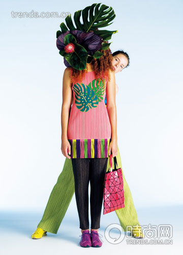 把叢林中變換的色彩和葉片穿在身上,甚至選擇面料立體處理,配合羽毛項(xiàng)鏈,創(chuàng)造出個(gè)性鮮明的時(shí)髦女郎形象。
