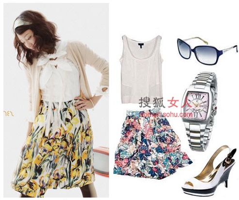 搭配建議:五顏六色的花會讓人感覺很愉快,如果自己搭配的衣物也帶有花的元素,會不會讓自己的心情變的更好呢?用帶有碎花圖案的長絲巾點綴來碎花裙,想不“花”都不行。白色小衫穩(wěn)定碎花的跳躍感,與淺色系小物搭配打造閃亮形象。
