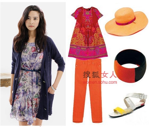 搭配建議:單看大花裙就給人感覺很甜美了,艷麗的的大花圖案令裙子甜美到了極點。并且線蕾絲的上裝一直很受年輕女孩喜愛。穩(wěn)重的腰帶及其他裝飾小物好看又實用,同時給整體搭配又添加了一道靚麗的色彩。