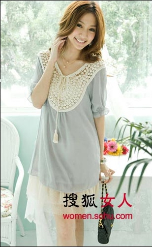 搭配亮點:雪紡面料+鏤空針織領(lǐng)
