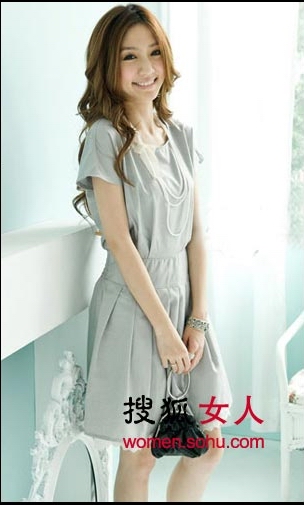 穿衣點評:不要認(rèn)為素色連衣裙不出彩,在款式上做點小手腳,就能展現(xiàn)另一番風(fēng)情。褶皺在腰部的巧妙運用讓平淡的款式多了幾分活力。