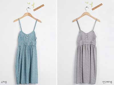 雪紡質(zhì)地的碎花吊帶裙,胸前有層疊的荷葉邊,細(xì)節(jié)感十足