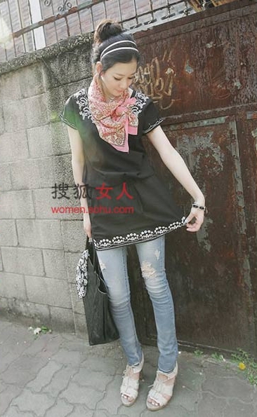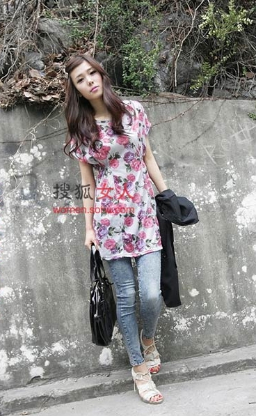 時尚解析:一向充滿淑女氣質(zhì)的印花連衣裙,加入亮眼的淺色窄腿牛仔褲搭配非常關(guān)鍵。將流行重點混合起來,重新展露出時髦的風(fēng)貌。
