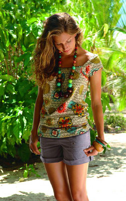 近兩年來季復一季,印花總是必備課題,各種風格、色彩和形狀的斑斕印花,帶來完全不同的感覺,而女人們對印花的熱衷永遠不會衰退。3Suisses法瑞兒(Faruier) 09年夏天的印花流行線索是暗調(diào)復古的民族印花,像非洲大陸的清風撲面而來。