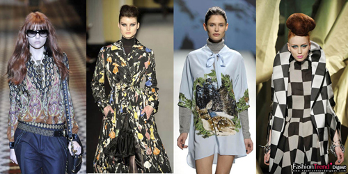 請(qǐng)大膽地使用印花或圖案,因?yàn)檫@是一個(gè)秋冬的花花世界。兼具70年代感和東歐民族感的傳統(tǒng)佩斯利花紋會(huì)非常流行;而鄉(xiāng)村風(fēng)格則采用從大自然中汲取靈感的物質(zhì)意象包括石頭、鵝卵石、木頭、羽毛等;還會(huì)有一些樹(shù)木、風(fēng)景、涉獵、捕魚(yú)等圖像。一個(gè)下一季最受歡迎的趨勢(shì)是離奇的插畫(huà)式圖案,其采用古怪甚至拙劣的日常圖象繪畫(huà)并具有某種頑皮的復(fù)古氣息。當(dāng)然還有彌漫著Deco之風(fēng)的印花,比如溫婉地鋪在花枝中的肉粉色玫瑰。格子的回歸非常重要,變化的尺寸和圖案形成一種錯(cuò)配的效果,具有一種"壞品味"的故意效果。這一趨勢(shì)越古怪越好,比如有天鵝、建筑感的線條、50年代的時(shí)髦繪畫(huà)和故事書(shū)中的動(dòng)物,而不僅僅是述說(shuō)一個(gè)朋克皇后的故事;蛘甙巡煌叽绲狞c(diǎn)子、花卉進(jìn)行混搭,具有超現(xiàn)實(shí)主義的感覺(jué)。