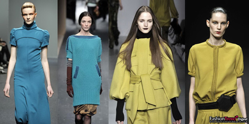 簡(jiǎn)約的回歸總是伴隨著著色彩單純而濃郁的發(fā)展方向,這就好比蒙得里安的繪畫(huà)。一些明亮飽和的色調(diào)如橘(橙)色系、孔雀綠、芥末黃以及各種粉色滲透著這個(gè)季節(jié),與黑色、咖啡色、駝色等一些基本色很好地結(jié)合。其中最有商業(yè)價(jià)值的或許是延續(xù)了兩季的孔雀綠和芥末黃,都帶有些精妙的復(fù)古感。當(dāng)然變化是有的,孔雀綠中帶有了一些翠鳥(niǎo)藍(lán)的成分,適合連衣裙和針織;芥末調(diào)則具有一些水洗感,為黑色或灰色增加一種明亮的調(diào)子。其適用于所有的產(chǎn)品領(lǐng)域,從外套到針織到連衣裙。孔雀藍(lán)和芥末黃共同構(gòu)成了秋冬濃郁的調(diào)色板上重要的一抹。