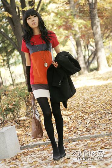 短袖針織衫拼接彩色的薄呢連衣裙是都市個性女人的首選單品,配合制服樣式的設(shè)計,透出活潑的個性女人魅力。