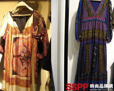 0809秋冬最富商業(yè)性的趨勢如以一根坐標橫軸表示,則是從民俗風格(鄉(xiāng)村風格)到都市搖滾。尤其是民俗風格,本季我們可以看到這一趨勢幾乎超越了各級市場從奢華到街頭,提供了很多可供選擇的印花、單品及裝飾細節(jié)等。各大品牌幾乎把民俗風格進行到底,從季初主要體現(xiàn)在民族風格的印花上(比如中歐風格的佩斯利花紋)到與70年代的嬉皮士風格混合,形成本季的新波西米亞風;或者深秋時把溫暖觸感的面料、十字繡圖案以及繭型輪廓相接合,摻入更多的鄉(xiāng)村風格;民俗風格在本季證明了高流行性的外觀同樣可以與商業(yè)性作很好的結合。