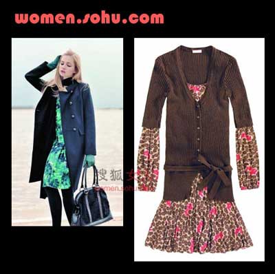 2.秋冬皮夾克基本是黑色或棕色,所以內(nèi)襯連身裙要是艷或印花襯托,這種搭配褲襪和長(zhǎng)靴是必不可少的單品。