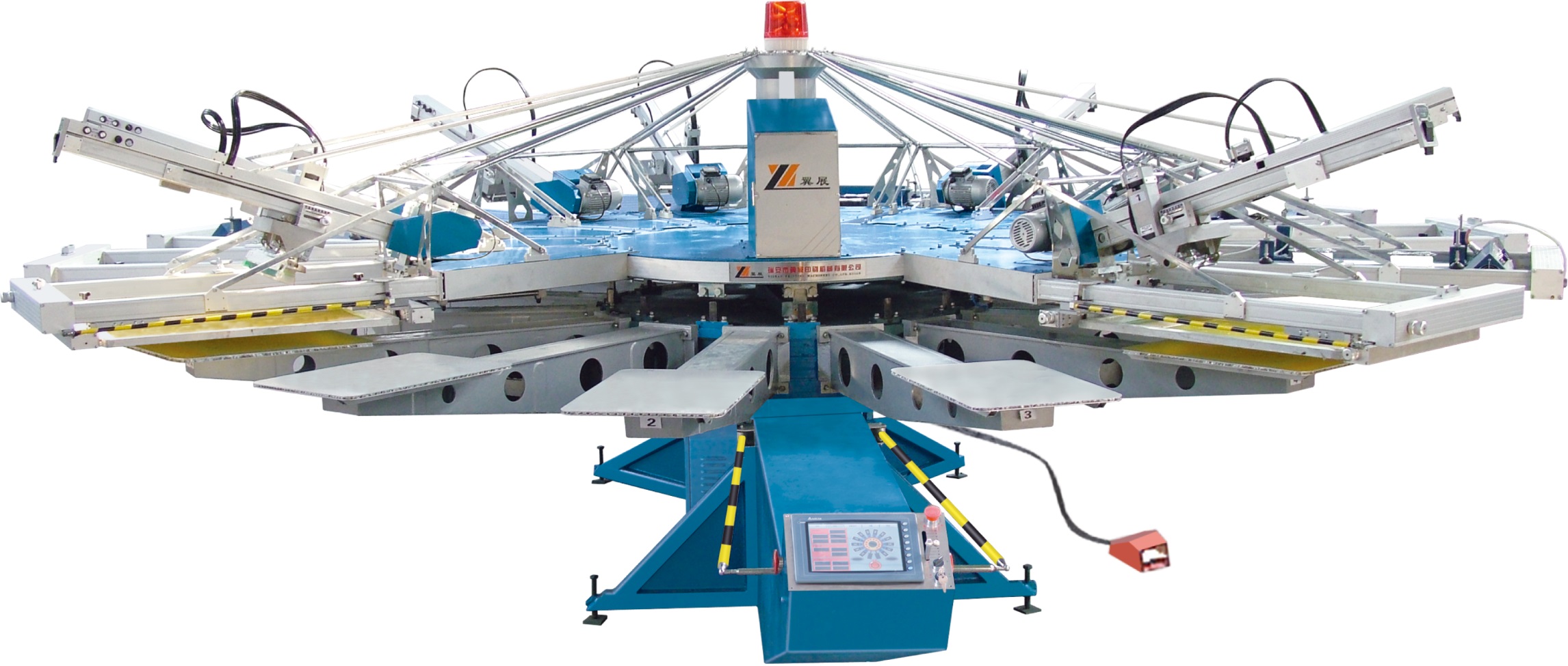 YH系列印花機(jī)是本公司最新穎也是國內(nèi)最先進(jìn)的新一代全自動(dòng)印花設(shè)備,將為您帶來高產(chǎn)量和快速的投資回報(bào)。其主要特點(diǎn)有:裝配電腦微處理系統(tǒng),精確的印花套色準(zhǔn)度,電動(dòng)印花頭和氣動(dòng)轉(zhuǎn)盤升降系統(tǒng),網(wǎng)框裝卸簡單快速,獨(dú)立的刮印回墨速度可自由調(diào)節(jié),機(jī)架可安裝植絨印頭以及生動(dòng)的觸摸屏操作界面。YH系列有4,6,8,10,12和14色可選,最大印色面積可達(dá)500×700毫米。所有型號(hào)都可以在T血衫,衣袖,片材和紡織品袋等上進(jìn)行印花作業(yè)。