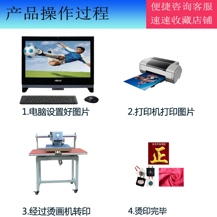 成功的燙印需要有正確的時(shí)間,溫度及壓力的配合,衣服的厚度和材料及燙畫紙的各類都影響到燙印的效果,各種燙畫紙都需試燙小樣后,方可批量生產(chǎn)。