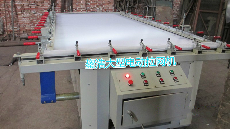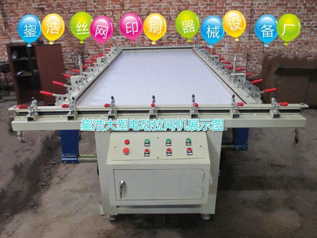 大型電動(dòng)繃網(wǎng)機(jī)是制作專業(yè)大型網(wǎng)版的必備機(jī)械,具有經(jīng)久耐用,省時(shí)省力等特點(diǎn)。適合絲網(wǎng)印刷的各個(gè)行業(yè),如玻璃廠,服裝廠,制版廠和廣告的大網(wǎng)版和批量網(wǎng)版的制作,操作簡(jiǎn)單,制版張力高,一經(jīng)推出好評(píng)不斷。此大圖規(guī)格是:1800*3000mm,也可根據(jù)客戶的需求加工定制,聯(lián)系電話:13131939856 歡迎各界朋友咨詢洽談。!