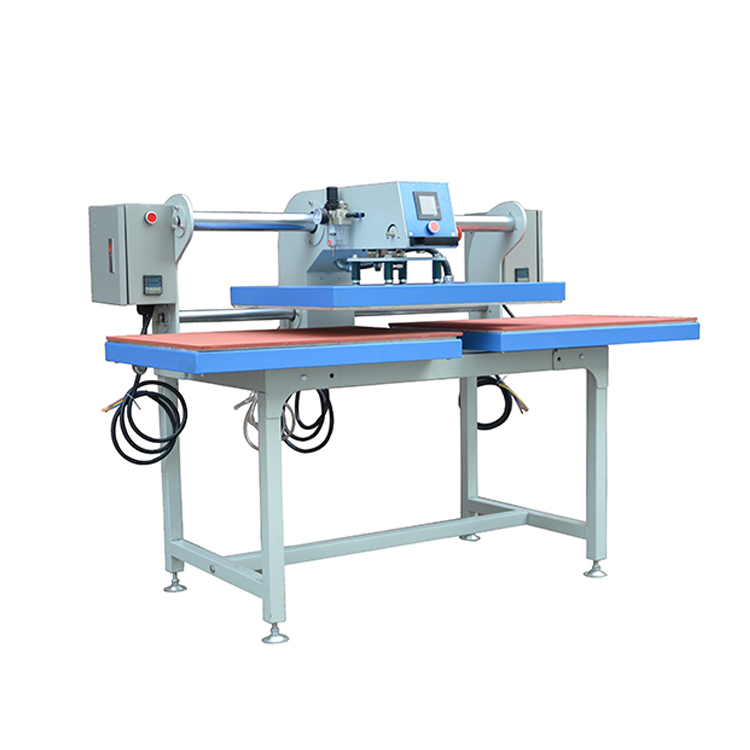 氣動(dòng)雙工位燙畫機(jī)可將升華類、溶劑類油墨的彩色圖案與文字經(jīng)熱轉(zhuǎn)印在棉、麻、化纖、尼龍等織物及陶瓷制品上,還可進(jìn)行植毛燙畫和發(fā)泡印花工藝等的熱處理,及服裝的低溫低壓襯與面料的粘合,如服裝、鞋帽等粘合之用,也可用于生產(chǎn)小批量的手帕