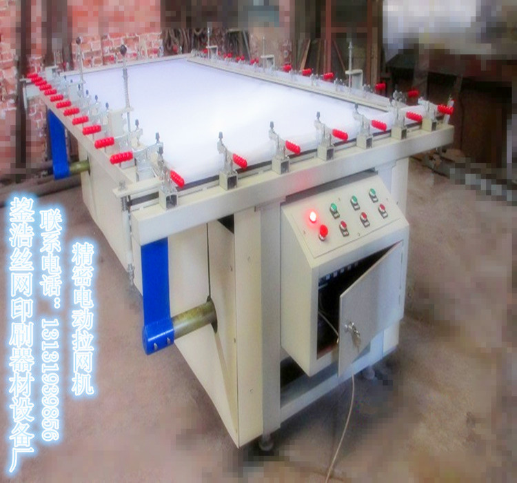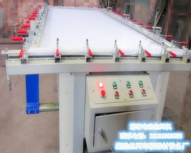 電動(dòng)繃網(wǎng)機(jī)(拉網(wǎng)機(jī)) 操作簡(jiǎn)單, 設(shè)計(jì)合理 ,是制作大型網(wǎng)版的理想器械!此機(jī)械采用一體式夾具。一體式夾具拉網(wǎng)機(jī)的特性就是拉網(wǎng)緊密不會(huì)出現(xiàn)回網(wǎng)布松網(wǎng)布的情況 、具有高張力的特點(diǎn),而且還能省時(shí)省力省人工!