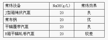 注:煮練時(shí)除加入燒堿外,還加有其它助劑