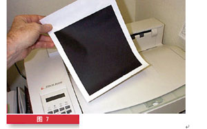 首先,使用最熟悉的繪圖軟件填充整幅畫面來制作一個K色實心底版,隨后通過激光打印機在常規(guī)打印紙上輸出此幅畫面(圖7)。