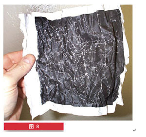 取出打印好的紙張將其揉皺,盡量折疊弄皺,因為紙面變得越皺,其后產(chǎn)生的仿舊效果就越好(圖8)。