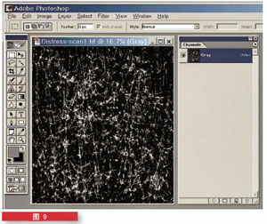下一步,掃描該圖,存為200 dpi或更高的灰度圖像,尺寸一般定在T恤衫設(shè)計的常規(guī)尺寸,或之后根據(jù)需要再作調(diào)整(圖9)。