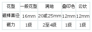 磁棒即金屬刮漿輥,截面為圓形,靠皮帶下的電磁鐵帶動而滾動;可靠改變磁棒本身重量和直徑來調(diào)節(jié)給漿量和印透性,也可加大磁場強度(即磁力)提高印透性。我廠使用的印花機磁力有七級可調(diào),磁棒規(guī)格為12~25mm。