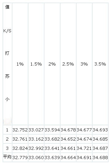 在常規(guī)工藝條件下,選用P型活性染料P-6B紅(3%)調(diào)制印花色漿,改變小蘇打用量(堿劑)對(duì)粘膠織物印花后汽蒸,后處理完后,在電腦測(cè)色配色儀上分別測(cè)其粘膠印花織物表面K/S值,其測(cè)試數(shù)據(jù)見表5。