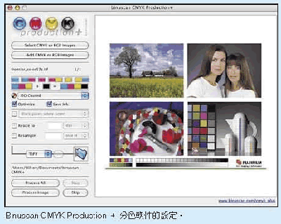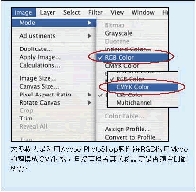 當(dāng)影像儲(chǔ)存為rgb模式,可通過(guò)適當(dāng)?shù)能浖D(zhuǎn)為cmyk模式,最為多人認(rèn)識(shí)的軟件是adobe photoshop,此外還有其它的軟件如binuscan公司的cmyk production+及photo retouch pro、aurelon公司的iciss、alwan公司的cmyk optimizer及大多數(shù)輸出rip內(nèi)的色彩轉(zhuǎn)換功能。