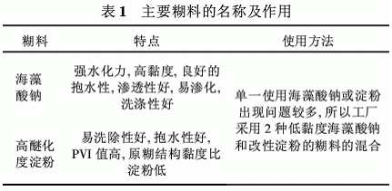 印花是局部染色,不同于整體染色。糊料是印花上漿的主要成分,它決定著染料發(fā)色后織物表面的得色量、鮮艷度和輪廓清晰度等重要指標(biāo)。主要糊料的特點(diǎn)及使用方法見表1。